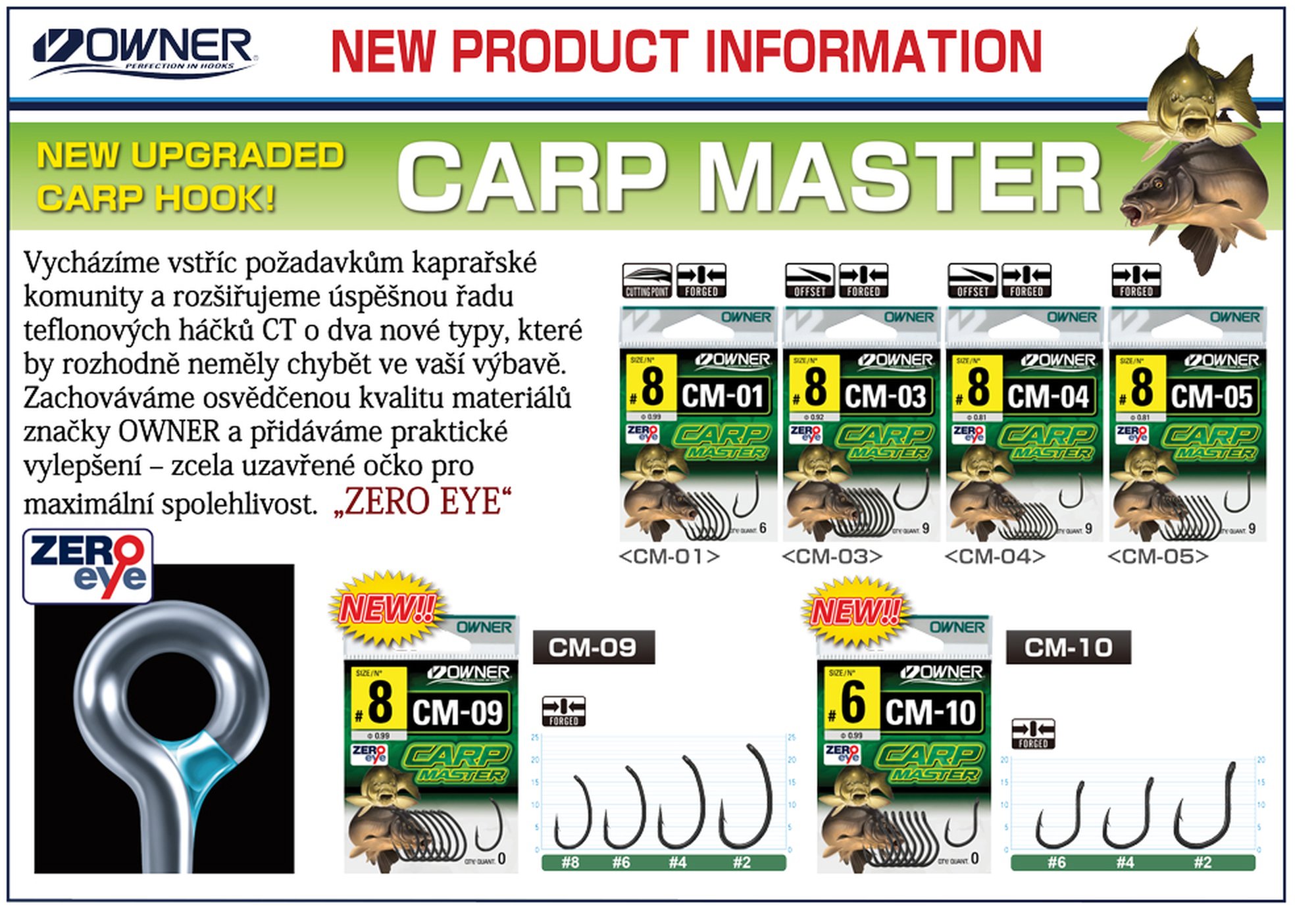 Nová řada OWNER CM-09 Carp Master Curve Shank přináší špičkovou kombinaci precizního japonského zpracování, ostrosti a spolehlivosti.