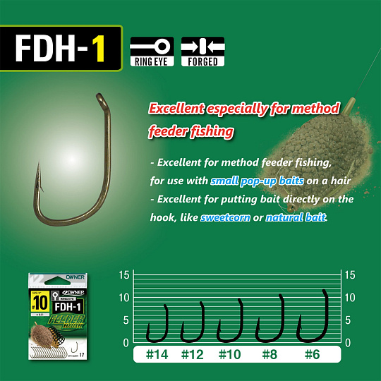 Háček Owner FDH-1.06 FEEDER HOOK s očkem, bal. 16ks, vel. 6