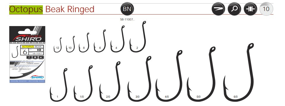 SHIRO Octopus jsou pevné háčky vhodné k rybolovu na rostlinné nástrahy a ve větších velikostech i na mrtvou a živou rybku.
